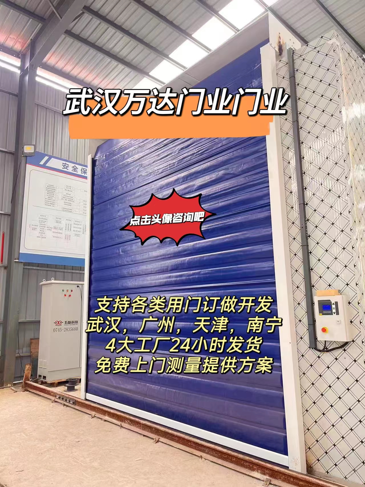 1、快速双层保温长顺窑门,自动感应长顺窑门,输送线长顺卷帘门快速双层保温长顺窑门 武汉万达门业全国制作安装 13871127817